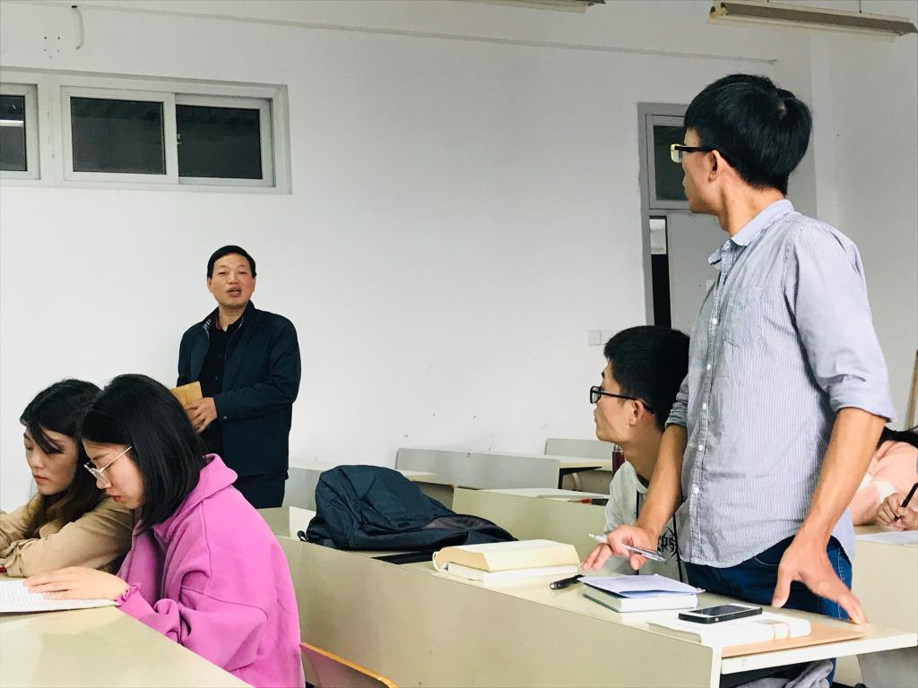 第一位同学是古典文献学张慧璎,她讲解《诗经》中的《氓》。首先她进行题解,“氓”实指由外地来的人。接着对诗句进行逐字逐句解释,认为诗歌从男女双方开始谈恋爱写起,至女子被弃。老师认为,张同学的分析具有文学性和民歌性。第二位同学是古典文献学陈珺璐,她讲解《诗经》的版本问题,主要内容为诗经学史的简述、《四库全书》收藏《诗经》版本的整理、图书馆馆藏《诗经》的古注书与今注书、《诗经注析》一书的特点。吴老师认为她可以融入自己理解,分析《诗经注析》的利弊。第三位同学是古典文献学卢亚倩,她主要介绍《诗经学史》以及《诗经》的二南,二南即《周南》和《召南》。第四位同学是古典文献学袁梦,她讲述《诗经》,先介绍乐,接着从《论语》角度讲解。老师认为,袁同学的观点独树一帜,颇有见地。第五位同学是文字学的温杨超,他讲解《汉字王国》这本书。温杨超先从书的内容和作者入手,再选取了书中“北、余、臭、百”四个字进行分析。最后他认为,此书优点在于内容浅显和具有趣味性。老师肯定了温同学对书本的评价,并且推荐了《细说汉字》和《汉语大字典》这两本书。最后一位同学是文字学王绣棠,他在讲解《汉字王国》时,认为《汉字王国》只是外国人写给外国人认识汉字的通识性读物,其中独特的叙述方式或许能在汉字通识教育、国际汉语教育等方面给我们一些启发,并且认为作者林西莉女士认识到了一些印欧语系语言的书面文字与口语彼此相适应的特点,以及与汉语的书面读音脱离口语的特点之间的差异。