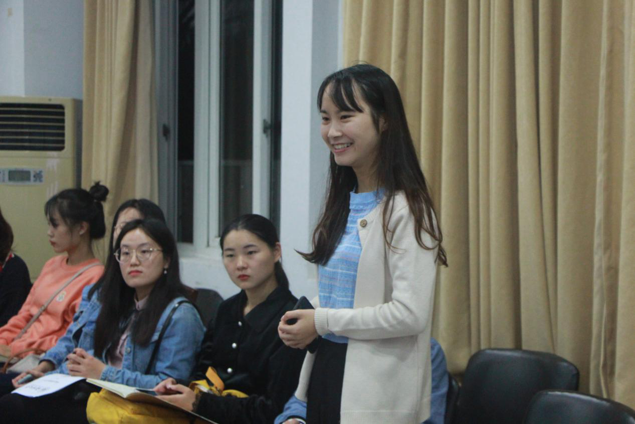 接下来是对外交流经验分享环节,徐丹学姐作为锡耶纳大学的交换生,和我们分享了出国的一些流程和注意事项。在入学初期,如果有出国学习的意向一定要尽早表达,积极准备签证办理;交流是一个不可忽视的问题,讲一口流利的英文会让这件事变得简单一些;在国外,交通和饮食问题是非常重要的,要积极主动地去适应,适当的做出改变;不要只和中国人交朋友,多和别人讲英语,及时修正自己的语法错误,反复尝试才会不断进步。最后,徐丹学姐再一次对自己的导师表示感谢。最后一位和大家分享的是正在意大利游学的张红霞。虽然张红霞学姐没有到现场,但是也通过录制的视频和大家做了简单的分享。她强调,学好口语是特别重要的一件事,因为老师们讲一个国家的文学就会用相对应国家的语言。张红霞学姐还从交通、学习等方面谈了一些自己的经历,让同学们更进一步的了解留学生活。