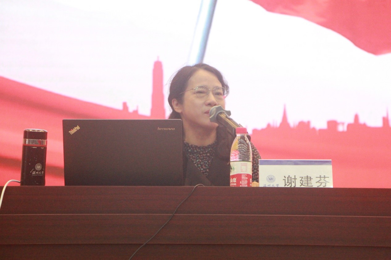 在丁老师的精彩讲解后之后,谢建芬老师讲解了什么是贸易战、中美贸易战的背景及成因、采取的措施等多个问题。“贸易战绝不是单纯的经济问题,还要看到这背后的政治问题。”谢老师说道:”面对美国的挑战,我国本着有理有节的原则不妥协也不逼战, 中国的大门不会关上,只会越来越大。“