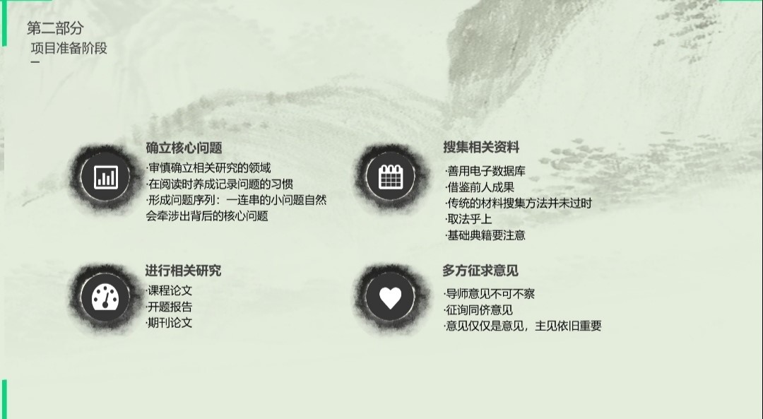 如《塔木德》里所说“如果一艘船不知道该驶去哪个港口,那么任何方向吹来的风都不会是顺风”,对于科研立项来说,确立课题方向的重要性不言而喻。17历本的蔡凤同学建议大家首先要确立课题研究的方向,列出大纲,提前做好准备。同时,她在如何搜集资料的问题上分享了她自己的经验,她鼓励同学们多去看一些数字资源库,多游览中国知网。比如研究地方习俗,可以适当地参考一些地方志或一些口述资料。17创中的厉子聪同学在选题方向上给出了多方面的见解。他建议,选题角度要新颖,要具有可行性和充实性,最好是一些与专业相关的课题。为了避免点太大,内容过于松散的问题,厉子聪同学还建议要把课题化大为小,找一个合适的切入点。接着,马东旭同学,武佳远同学和崔梦鸽同学分别从如何撰写课题,如何寻找资料和如何排版编撰的问题上发表了自己的看法。