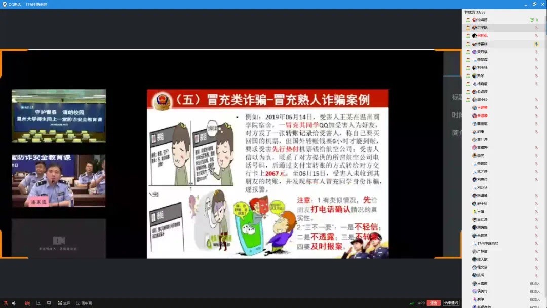为切实加强师生防范电信网络诈骗的意识,增强学生遇到诈骗现象灵活应对的防范意识,提高学生面对安全风险时自我预防、自我保护、自我应对的能力,共筑校园安全防线,免费色情片 于2020年5月20日18:30积极参与了“同上一堂反诈安全教育课” 线上活动。