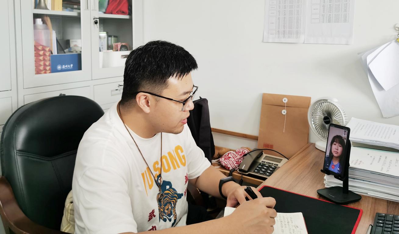 2020年8月15日晚20:00,19历史(师范)班班主任张洁、班助钱璟在人文楼311B世界史教研室以视频连线的方式与19历史(师范)吴陆发进同学及其母亲展开线上家访。家访开展顺利,谈话融洽,气氛愉悦。在简单的自我介绍后,本次家访围绕四个问题展开:吴陆发进同学的假期生活、家庭状况、大学规划以及吴陆发进同学与其母亲对学校、学院、班级的建议。