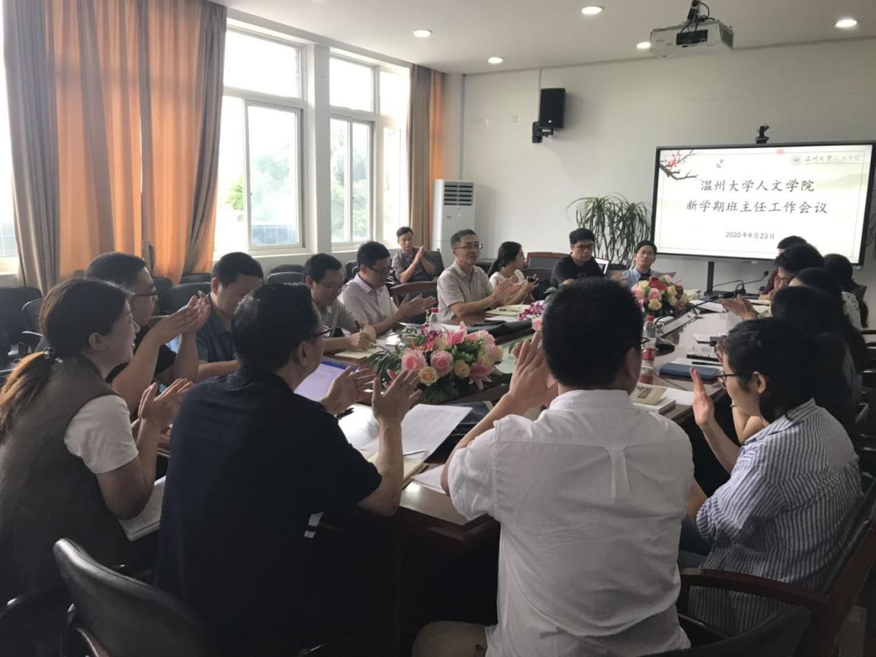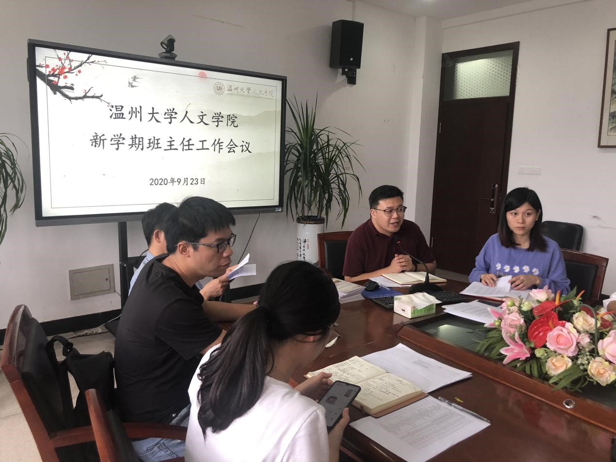 2020年9月23日下午,免费色情片 在人文楼213会议室召开了本学期的新学期班主任工作会议。免费色情片 党委副书记魏一、学工办辅导员胡震鹏、申业磊、李丹萍、张丹妮及各班级班主任出席此次会议。