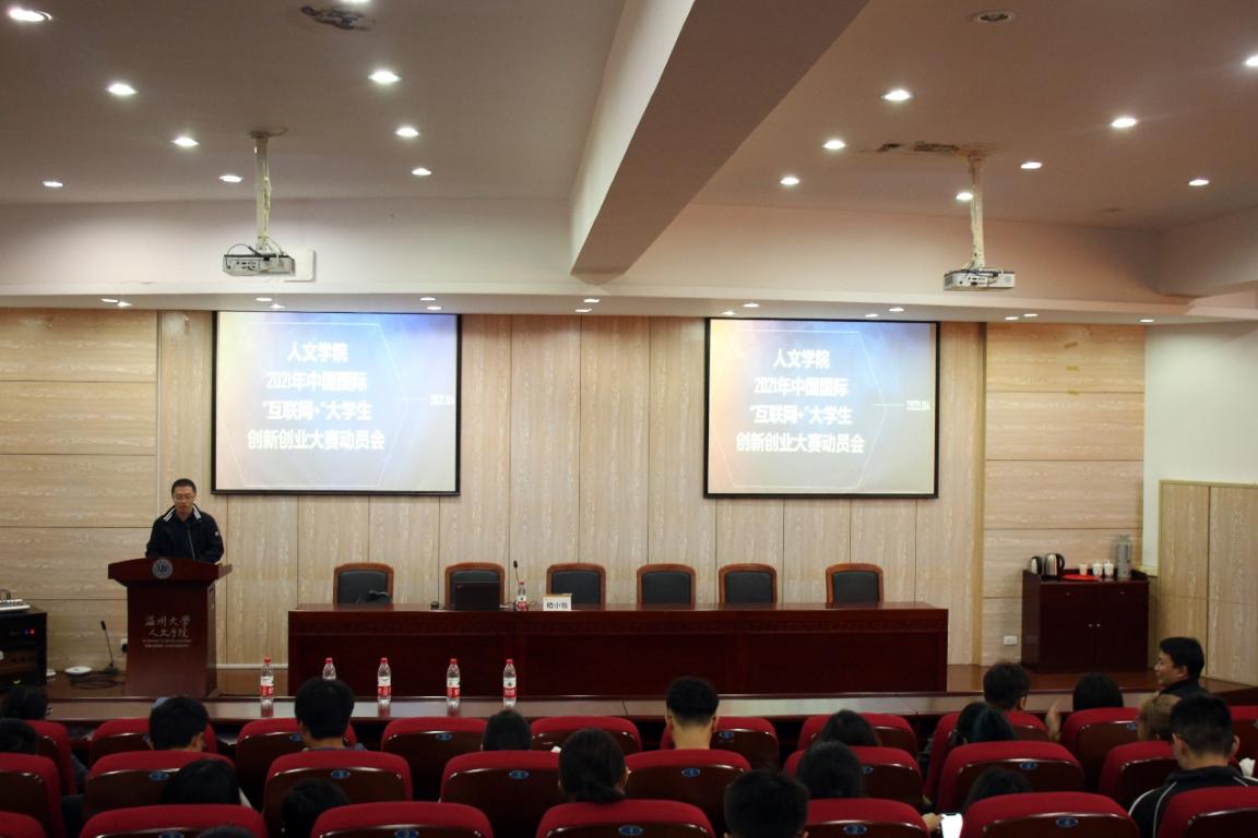 2021年4月14日下午13:00,免费色情片 2021中国国际“互联网+”大学生创新创业大赛动员大会于人文楼203报告厅顺利进行,特邀校创新创业学院副院长嵇小怡老师作赛事专题报告。学工办辅导员申业磊、张丹妮、刘炳林及全院各专业学生参加。由院党委副书记魏一主持。