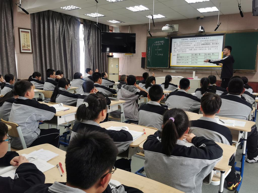 杨旭愉老师以南宋诗词为主要线索进行授课,让同学们通过对诗词材料的分析来感受当时的社会状况。颇具特色的是,杨老师利用了温州地方史知识,也就是江心屿上的宋高宗题词进行导入,拉近历史与现实的距离。杨老师的课堂充分体现了以学生为中心的教学理念,就“历史人物:岳飞”和“历史事件:宋金和议”学生们不仅展开了激烈的讨论,小组代表还分别上台展示,并且其他同学或补充说明或提出不同观点,在此过程中,学生得以充分思考。最后,杨老师对各组的展示进行点评,并对本节课的内容进行了归纳总结。
