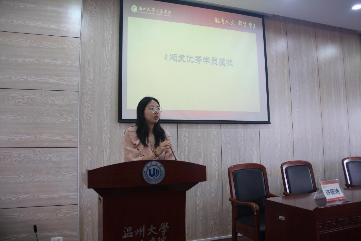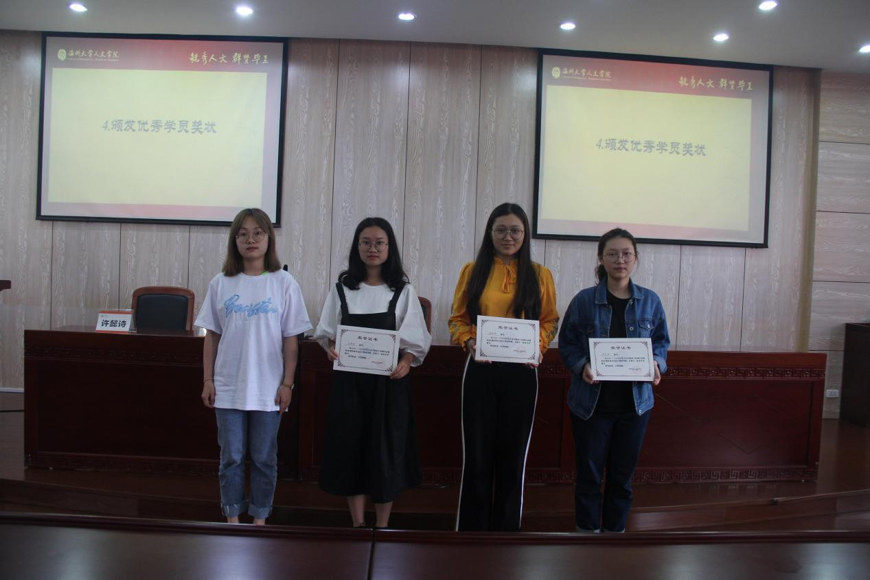 学院“四史青年说”项目成员陈如意同学进入团委学生会,为团学干部上了一节生动的党课。她以“信仰的力量”为主题,向团学干部们讲述了一个个从惨淡走向辉煌的故事,和大家共同学习了在黑暗中挺身而出的民族英雄们的伟大事迹。“星星之火,可以燎原”,“青春的底色是爱国,青春的支点是奋斗”,我们青年一代生逢其时,重任在肩,要懂得用奋斗去迎接下一个百年辉煌。随后,张祺超同学为优秀学员王渝茜、赵陈祎、徐月燕、叶萌萌颁发了奖状。