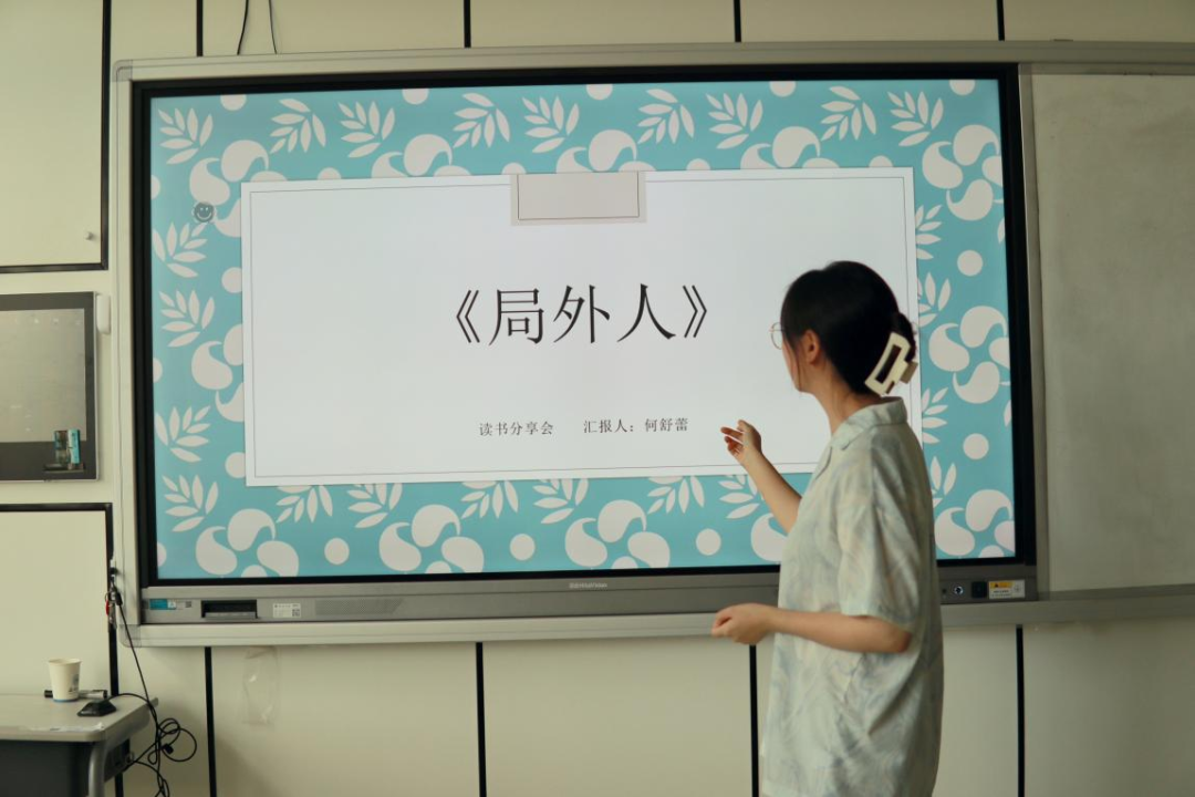 何舒蕾同学为大家推荐了法国作家阿尔贝·加缪的中篇小说《局外人》。何舒蕾同学简练地概括了全书的大致内容:小说通过粗线条描述了主角默尔索从参加母亲的葬礼到偶然成了杀人犯,再到最终被判处死刑等荒诞境遇与情感体悟,以冷峻简练的语言塑造出默尔索“局外人”的形象。她指出这本书的伟大之处就在于用看似无关、琐碎的零散叙述,深入描摹其自身虚无、孤独的生活。该书中的“局外人”也由此成为整个西方文学和哲学中最经典的人物形象和最重要的关键词之一。