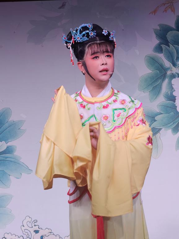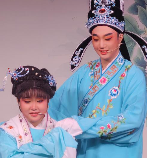 社团成员严敬婷、俞茹吉带来的越剧《何文秀》心连心选段甜到了。