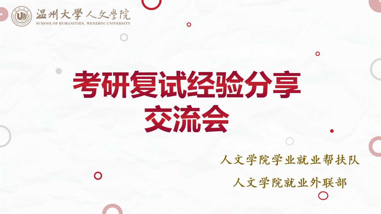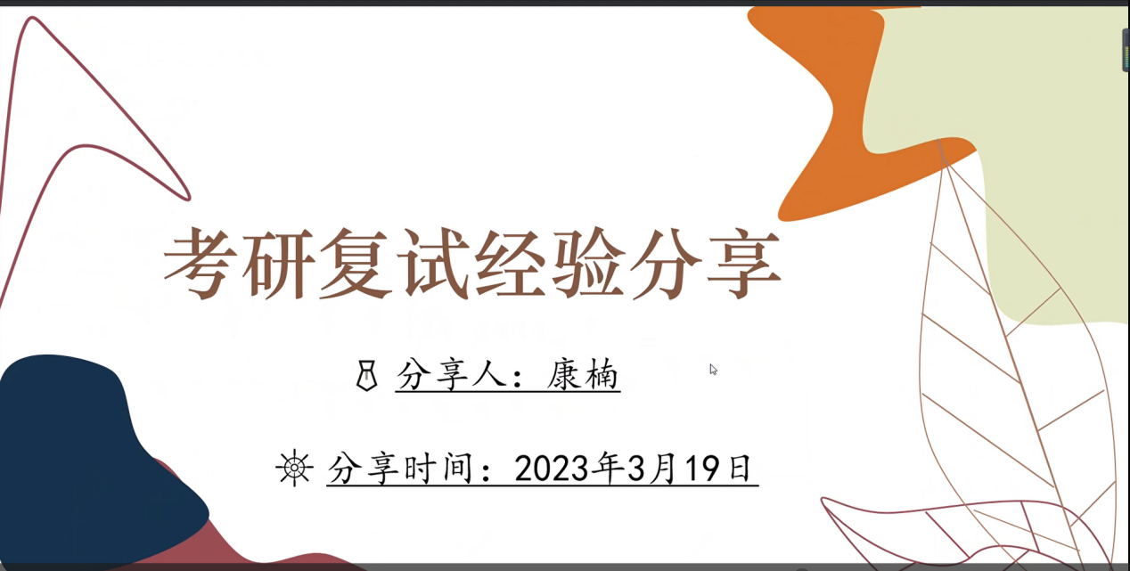 为了进一步帮助免费色情片 考研学子掌握复试技巧,提升考研录取率,2023年3月19日晚,免费色情片 考研复试经验分享交流会在腾讯会议如期举行。本次活动有幸邀请到了21民俗学李蓓学姐、21学科教学语文陈蒙蒙学姐、21中国史肖心蕊学姐以及21文化创意康楠学姐分享有关一志愿复试、调剂经验等方面的经验。
