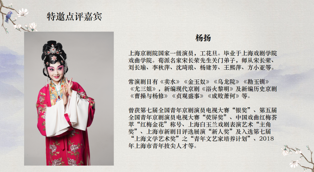 清音会上,各高校学生戏曲社团大显身手,有中南民族大学京剧团带来的男旦身段表演《战宛城》选段,有河南师范大学河南戏曲研习社表演的多人豫剧《红灯记》选段,还有浙江大学浙大越剧社表演的男子越剧《白蛇传·断桥》选段…真可谓是百花齐放。清音会最后,国家一级演员、第29届上海白玉兰戏剧表演艺术奖“主角奖”得主、上海京剧院荀派名家杨扬老师对此次清音会做总结点评。
