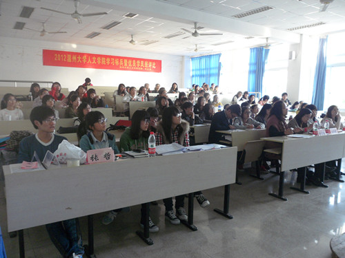 古代汉语教室陈源源老师担任本次评委。参与学习标兵评选的七位候选人,参与优秀学风班评比的班级代表及部分学生观众共同参加了此次活动。