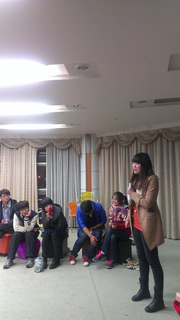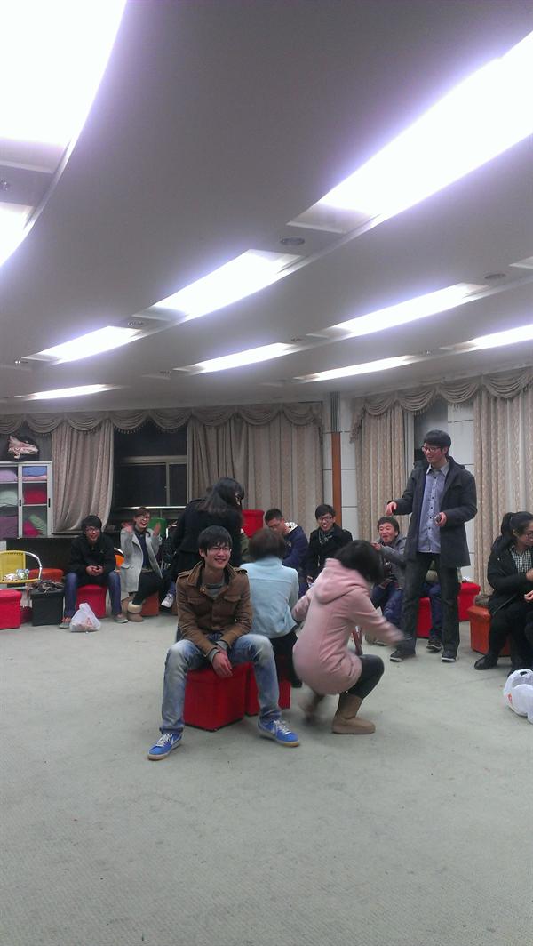 活动一开始首先是由宣传部的胡畅与查玲倩带来的英文歌曲《a little love》。一曲以后是办公室的李海洋与蔡珂带来的节目,歌曲串烧。如果说宣传部胡畅与查玲倩歌曲在寒冬给大家带来了温暖如春,那么办公室的李海洋与蔡珂的歌曲串烧则点燃了整个联谊晚会的激情。你方唱罢我登场,在冻人的歌声之后便是由组织部的毛艳红与叶益如带来的相声《我的大学》和由素质拓展部的邱晨、朱佳莹与刘丁红带来的小品《推销风波》。台上的相声小品诙谐幽默,台下也欢声笑语雷动一片。在相声小品的欢声笑语之后便是艺术团也是校十佳最佳人气奖得主魏婷同学的歌曲《天下无双》。在精彩的节目演出之后便是大家喜闻乐见的游戏环节。第一个游戏叫你说我猜,这个游戏主要考验游戏者对团学内部各成员的熟悉程度,第二个游戏是传统的抢凳子,抢到凳子的人便有回答问题的机会,答对了问题会有精美礼品赠送。曾老师也饶有兴致的参与其中。当游戏环节结束以后,便是由主席团带来的神秘节目。首先是由团副林武带来的独唱《人质》,主席杨立忠,副主席张哲的合唱《情深深雨濛濛》,副主席马喆的歌曲<黑色毛衣>以及副主席屠焕青的冷笑话。在联谊结束后,免费色情片