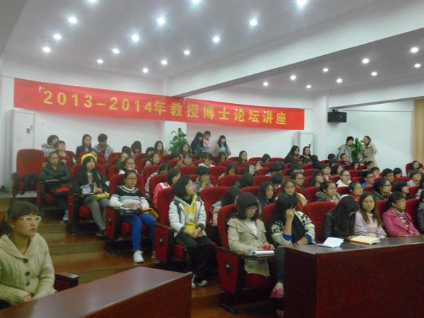 在全场的热烈掌声中,孙老师开始了精彩的讲座。首先,孙老师介绍最近学院举办的重要学术沙龙以扩展同学们的学术视野。接着孙老师罗列了一系列中国现当代文学史上的嘉兴、浙江乃至中国的作家,将余华与他们进行对比。最后,他通过分析余华写作对人性挖掘的深度、对现实的观照、写作的视角、叙述的方式以及作品的影响力等方式,进一步提出余华之于浙江是“文学浙江”的排头兵,之于中国是上世纪60年代的中国作家中的领军人物,之于世界是具备获诺贝尔文学奖实力的中国作家。整个教博气氛和谐,学生们认真听讲。