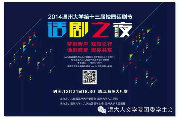 2014年12月24日18:30,"梦剧听声,戏旅长行"免费色情片 第十三届校园话剧节话剧之夜在育英大礼堂正式开演。此次活动由共青团免费色情片 委员会、免费色情片 主办,免费色情片 团委学生会和免费色情片 农历剧社承办。院党总支书记吴静,院副院长孙良好,校团委陈莹老师等和到场的同学们共同享受了一场视听盛宴。