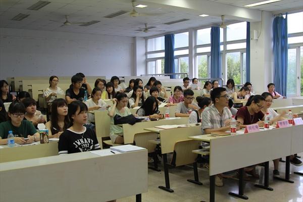 接着,12级主席团成员也相继发表了讲话。与在场的每位团学成员一样,团副叶益如学姐回顾了几年来人文团学取得的优秀成绩,表达了对人文团学的热爱与眷恋,并对14级团学的成员们提出了殷切期望。主席徐浩学长在讲话前,为大家播放了一段精心制作的视频。视频展现了一直陪伴在团学左右、默默付出的曾蓓蕾老师的生活中的点点滴滴。在之后的讲话中,徐浩主席也数度哽咽,满含深情地表达了对曾老师的即将离开的不舍,并向曾老师赠送了团学全体成员写给她的一本精美的留言册。此情此景,让在场的团学成员都为之动容,全场报以热烈的掌声。