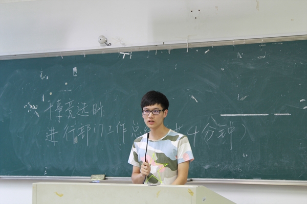 会议的第一项流程是各部门部长职位的竞选。各部门的14级干事们相继登台,发表了条理清晰却又不失温情的竞选演说。他们对个人一年的团学工作进行了回顾与总结,赞扬人文团学是个温暖有爱的大家庭,对曾蓓蕾老师、老一届部长们的悉心帮助与指导表示感谢,并各自提出了对未来团学工作的展望。