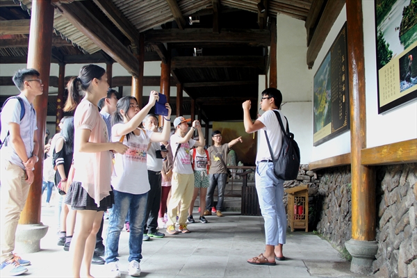 学办、文化创意学硕士生肖倩倩同学表示此地山水娴美令人流连忘返,附近又有如许出色的文化创意项目,对大家学习帮助非常大。丽水街的参观结束,同学们在街口农家乐用了午餐,便前往下一站——永嘉书院。