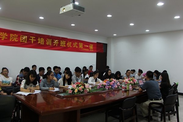 开班仪式上,朱启鑫副书记首先对新团干们的到来表示热烈欢迎。接着又以“教育的价值是关注人的价值”为主题,通过亲身经历向团干们介绍了台湾部分高校的校园建设状况,并结合自己在台湾高校的考察感想,分析了台湾学生事务工作的特点。他强调,团学的工作不能脱离全体同学,要让广大的学生集体参与到自我管理的工作中来,同时也要充分调动团学干部和班级干部的积极性,培养团干们克勤克诚、无荒无怠的工作态度,摒弃本位主义,通过合作探讨,相互配合,做好自身工作,承担其人文团学的责任。此外,他还提出要注重加强团学干部和班级干部个人素养的提升和创新能力的培养。朱书记的亲切讲话在团学与班级干部中引起热烈反响,仪式在热烈的掌声中落下了帷幕。