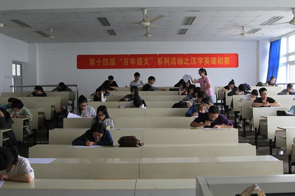 第十四届百年语文系列活动之汉字英雄初赛在人文楼各个试场隆重举行,本次比赛共吸引了多个学院近四百位同学报名参加,13时30分,比赛正式开始。