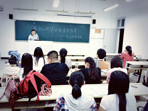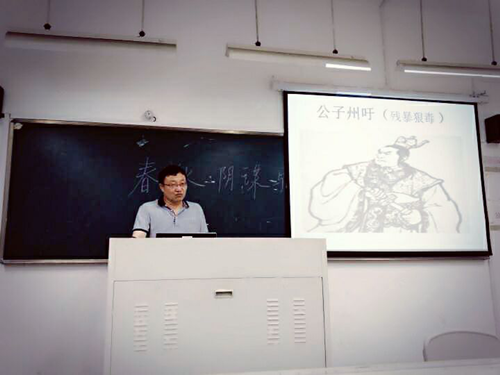 年5月24日晚6点半,免费色情片 古典文学教研室主任张一平教授在人文楼409教室为免费色情片 古代文学专业同学做了题为《春秋·阴谋与爱情的较量》的主题讲座,二十余名同学聆听了本次讲座。
