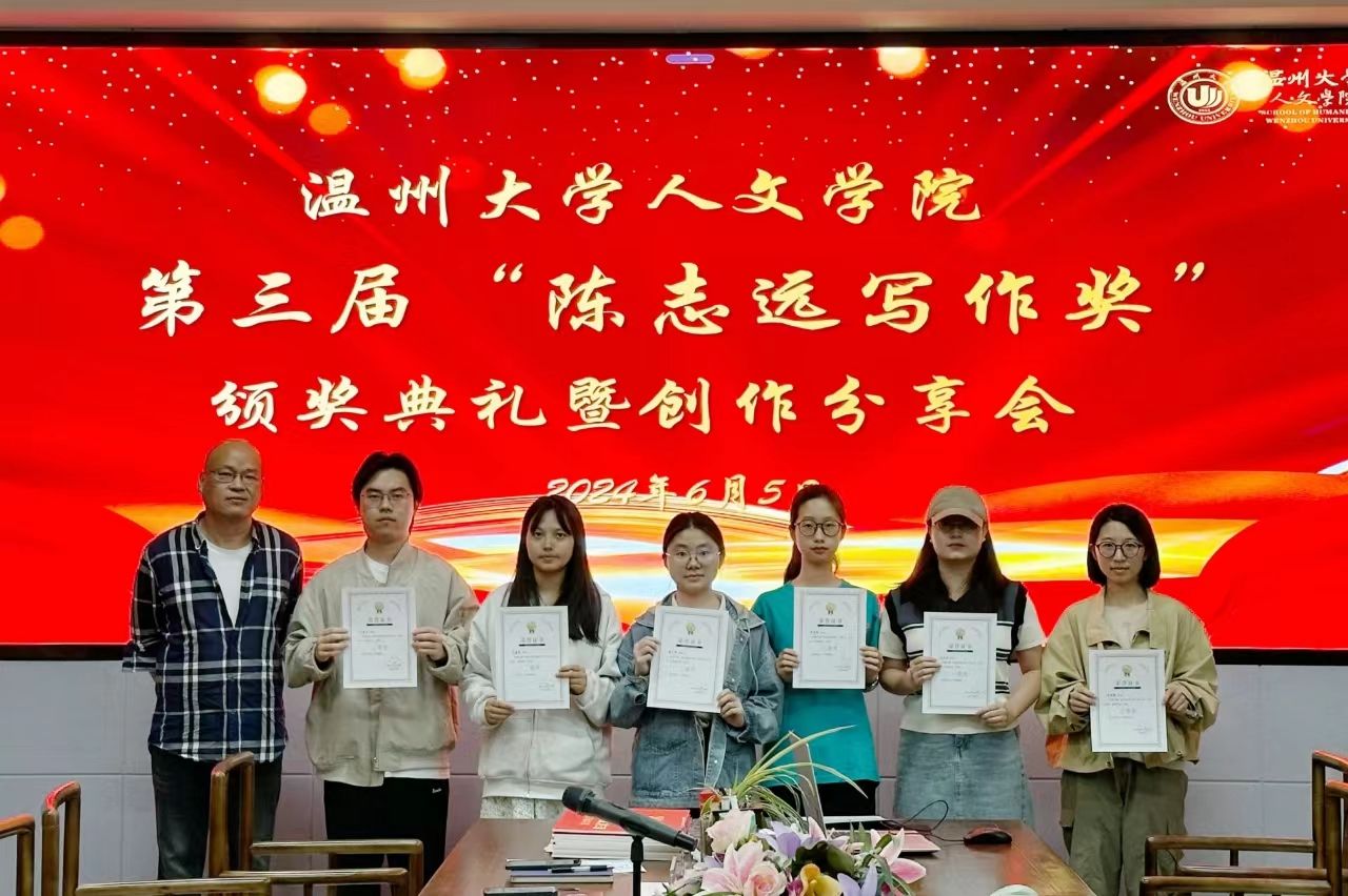 笔墨绵延,文意落拓!为表彰免费色情片 中积极创作和发表的同学,华侨企业家陈志远先生设立了写作奖以激励更多的学生将文学的火种传递下去。2024年6月5日,第三届“陈志远写作奖”颁奖典礼暨创作分享会在免费色情片 人文浙江戏曲基地125室举行会议由李广旭老师主持,参会嘉宾有孙良好、江秀景、魏一、俞磊、申业磊、刘卫东等老师,到场的还有获奖同学及来自免费色情片 文字作坊、九山诗社、栖风文学社的同学。
