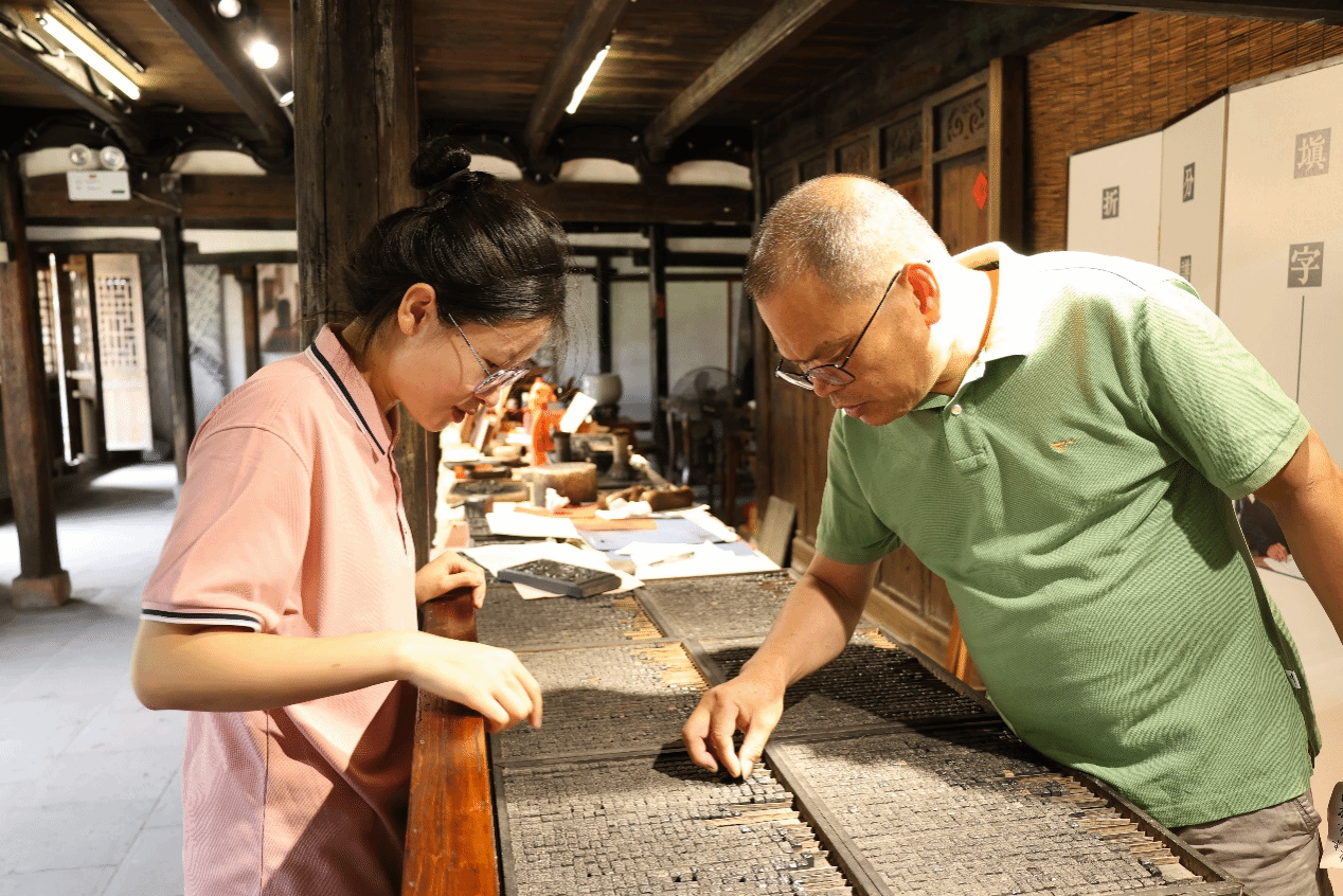 在初步的考察学习中,实践队成员们熟悉了印刷术的起源与发展,领悟到印刷技艺背后的谱牒文化。此刻,匠人工艺仿佛重现在大家面前,他们的双手在字盘中演绎中华文明的无限锦绣。