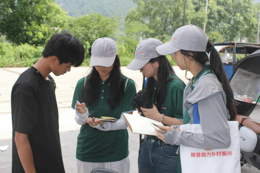 为加强国家通用语言文字的推广普及,实践队成员开展了普通话政策宣传、推普教学课程、理论微宣讲等活动。成员在路边、店铺等场所向村民们进行普通话的一系列政策宣传,以此提高人们讲普通话的意识。对于中小学生,以“说好普通话、写好规范字”为主题开展推普教学课程,采用寓教于乐的多样化、趣味性形式,让学生在“学中玩”,在“玩中学”。同时,实践队以“推广普通话,奋进新征程”为主题深入农村,对当地居民、基层干部开展理论微宣讲,用浅显易懂的语言讲党的创新理论。