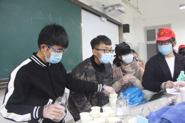 青协共同组织。 志愿者们早早地到达206教室,接受活动前的指导,学习相关技巧。在简单严肃的讲解提醒后,校文督负责人一一分发口罩,抹布等工具。志愿者们全副武装,一丝不苟地清理着课桌。大家时而小心地以小刀刮掉桌上的牛皮癣,时而用抹布蘸少许香蕉水,大力擦拭桌上的污渍。纵然空气中弥漫着刺鼻的气味,志愿者们依然热情不改。