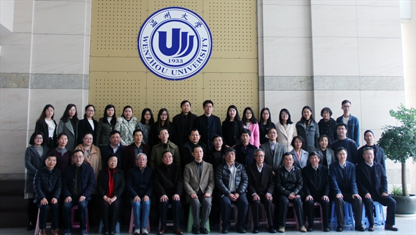 院长蔡贻象教授和人文社科处副处长郑春生教授以及课题组成员。