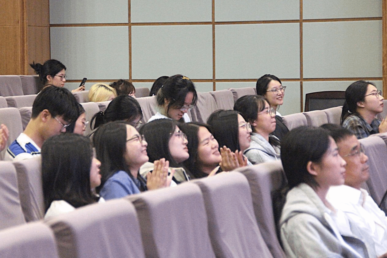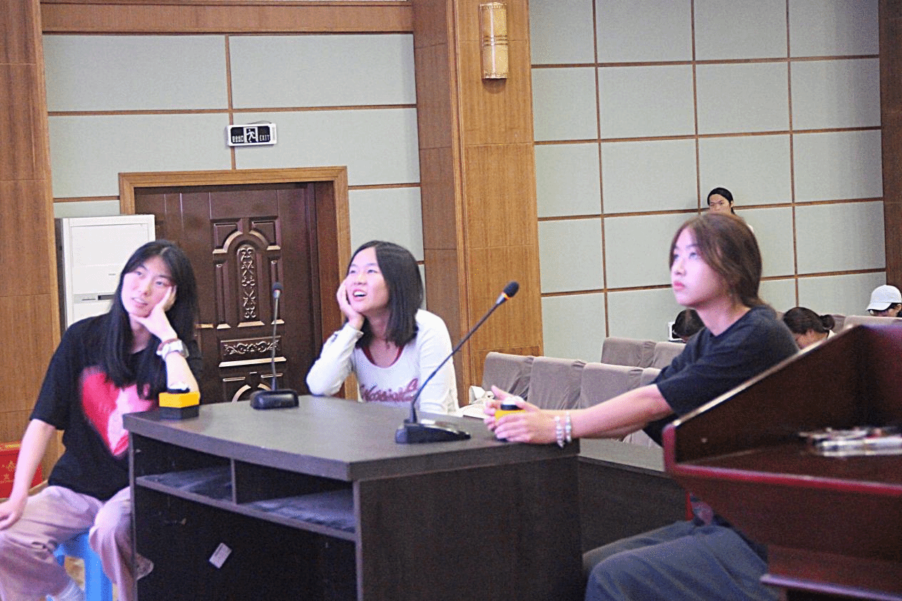 第三轮比赛开始,陈嘉乐、周佳靖、石彩琳三位同学成功晋级。本轮为抢答制,选手们反应迅速、积极抢答,观众们也为选手们的精彩表现加油助威,现场气氛达到了顶点。