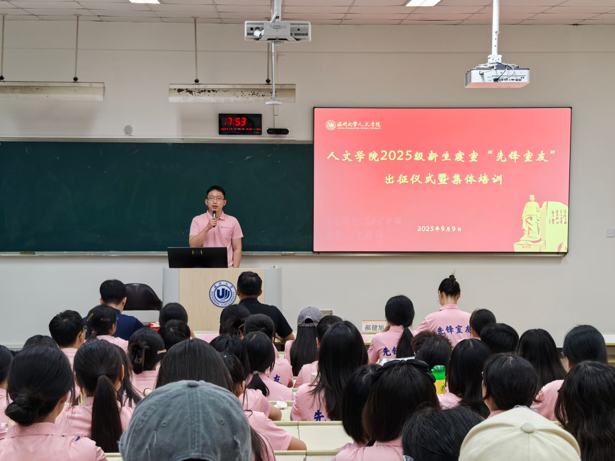 黄玮老师在出征寄语中强调,“先锋室友”要首先要讲正气,以良好的风貌和心态为新生服务,做好新生榜样;二要讲发展,鼓励新生钻研专业、参与竞赛与社会实践;三要讲底线,严守寝室安全,杜绝违规用电、校园传教,警惕电信诈骗;四要讲和谐,引导营造互助友爱的寝室氛围。