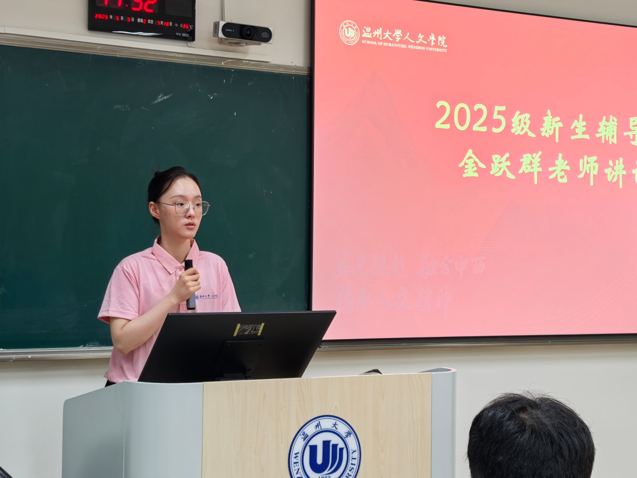 刘恭宇老师解读六大岗位职责:一是解读专业培养方案并分享学习方法;二是生活关怀,熟悉校园设施及生活经验;三是交际指导,协助建立人际链接;四是党团发展,介绍组织架构并引导靠拢;五是矛盾调解,及时发现处理寝室问题;六是安全管理,做好门禁、消防、防诈骗及交通安全工作,明确应急流程。