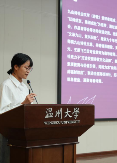 丰富多彩的社团介绍将现场气氛推向高潮。九山诗社副社长李胜男、露浓话剧社副社长邓宇豪、瓯越春秋社组织部部长金周彬、文字作坊社副社长江虹羲依次登场,以各具风格的方式展示了免费色情片 挂靠社团的特色文化与人文气息,充分彰显免费色情片 的生机与魅力,引来掌声阵阵。