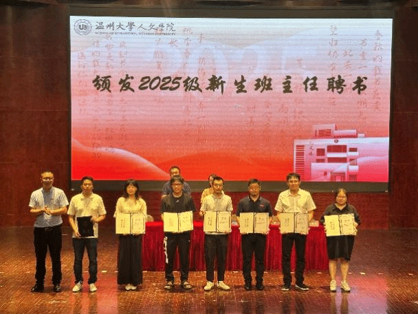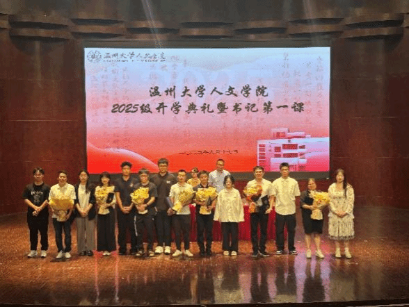 接着是2025级新生班主任聘书颁发仪式,由江秀景书记为新生班主任们颁发聘书,新生班长为班主任献花,现场掌声不断,彰显了新生们对于班主任们以及大学新生活的蓬勃意气与憧憬期待。