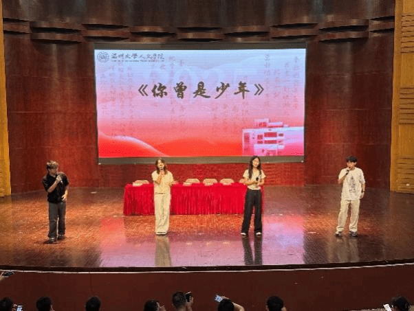 大会伊始,吴忻阳、蒋麦莎、李雨桐、周子涵四位同学为我们带来暖场歌曲《你曾是少年》,歌声唤起了同学们对青春的共鸣。