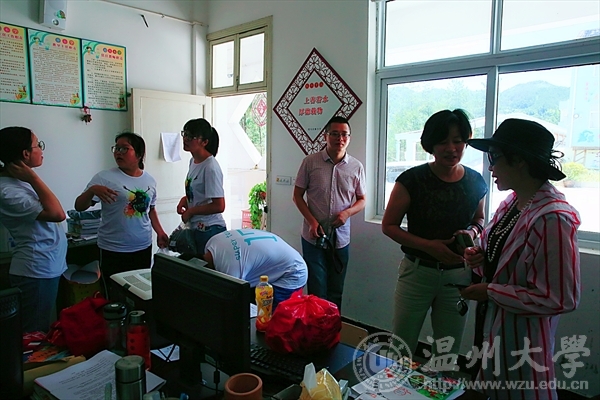 副院长刘建国以及文成社科联主席赵雪微、宣传部党教理论科科长叶耀坤温馨探望实践队学子。