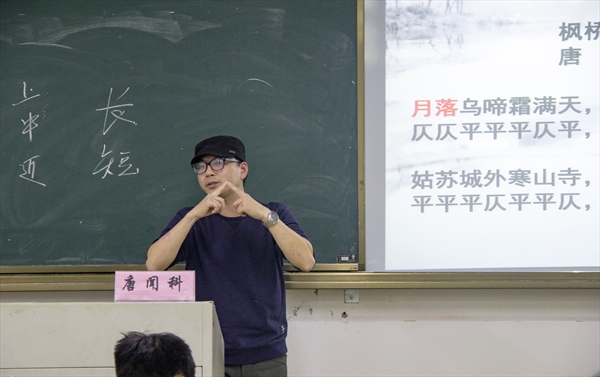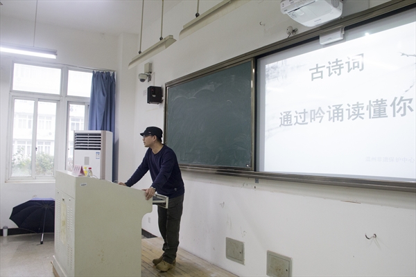 邀请了温州市文化馆非遗中心的唐闻科老师在人文楼206教室举办了一场以“古诗词,通过吟诵读懂你”为主题的古诗词吟诵专题讲座,带同学们一道体验古诗词的吟诵之美。