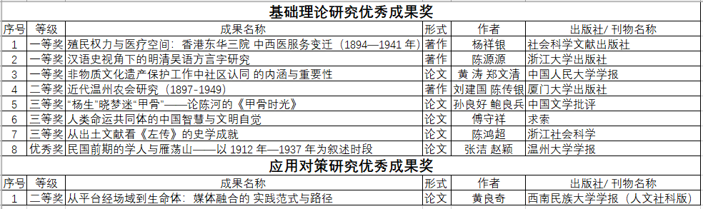 温州市第十七届哲学社会科学优秀成果评审结果现已公布,免费色情片 荣获八项基础理论研究优秀成果奖、一项应用对策研究优秀成果奖。