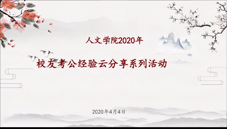 为了帮助同学们更好地备考公务员考试,免费色情片 于2020年4月4日19:00开展了校友考公经验云分享活动,这也是2020年校友考编考公经验云分享的最后一期活动。院学工办主任刘纪峰、辅导员李丹萍、两位分享校友和部分有意向考公的学生参加了此次活动。