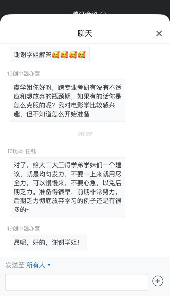 最后是互动交流环节,校友们对问题进行一一解答。此次考研云分享,是免费色情片 就业服务系列活动之一,它为同学们搭建了与考研成功学姐交流的良好平台,有助于同学们清晰自己的定位,朝着彼岸和远方进发!