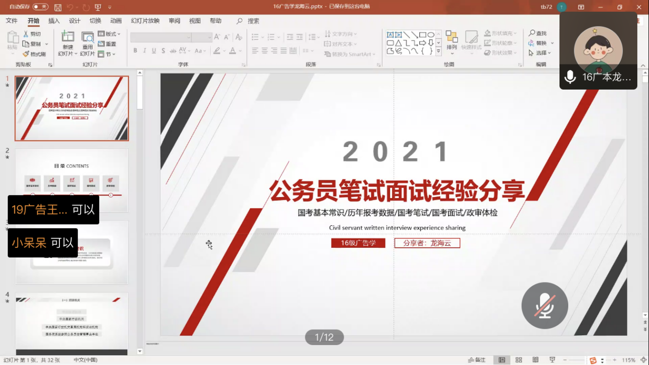 2020年11月21日晚6点30分,免费色情片 2020年下半年就业服务系列活动之校友考公云分享在腾讯会议上如期举行。此次免费色情片 特别邀请三位考公顺利上岸的校友进行经验分享。