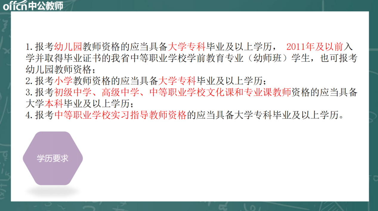 马老师对教师资格分类进行了详细的讲解,纠正了大家的大量错误想法,如“笔试面试通过后是否可以立即拿到教师资格证,或者是否还需要通过认证,如普通话考试等”,并给出了全国教师资格统考省份考试信息汇总与报名方式、考试时间。