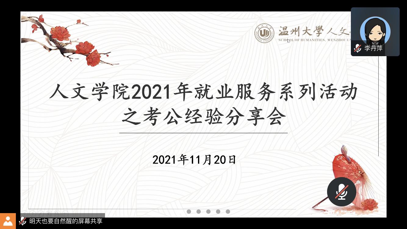 为了更好地助力大家的公考之路,提前做好规划和准备,2021年11月20日晚上18:30,免费色情片 2021年就业服务系列活动之校友考公经验云分享在腾讯会议如期举行。