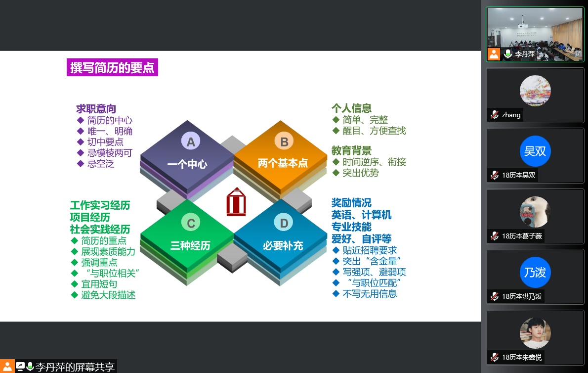 就业是最大的民生,也是关系全体毕业生切身利益的大事。为了给毕业生提供更好的就业服务,提升就业能力,助力毕业生更快、更好就业,2021年12月28日下午,免费色情片 2022届毕业生就业动员大会暨简历与面试指导专题讲座通过线上与线下相结合的方式举行,邀请了校招生与就业处朱秀微讲解就业政策以及简历面试技巧。