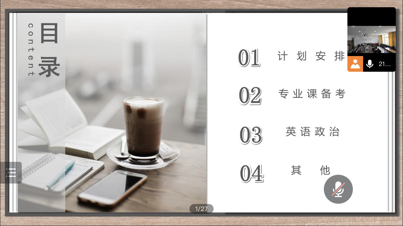 会上,魏书记简要介绍了整体就业情况与往年考研情况,他向与会同学分享了四点建议:第一,若选择了考研,应坚定决心,持之以恒;第二,相信自己,勇往直前,努力奋斗;第三,掌握学习技巧,融会贯通,建立任务清单;第四,身体是考研的本钱,关注身体健康,保持日常锻炼。他鼓励同学们:“有志者事竟成,选择考研就不要轻易放弃。”