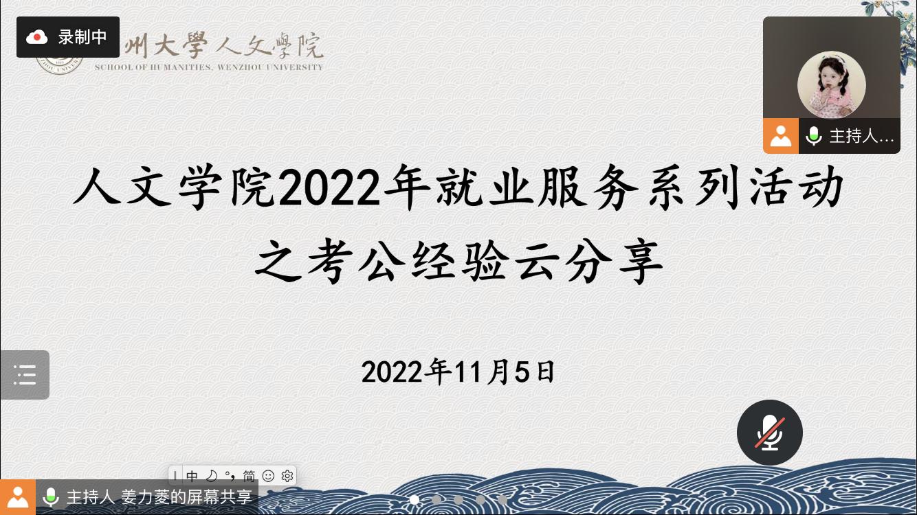 为加强同学们对公务员考试的了解,助力大家更好备考,2022年11月5日晚18:30,免费色情片 2022年就业服务系列活动之校友考公经验云分享在腾讯会议如期举行。此次分享邀请到四位考公顺利上岸的校友们分享公务员备考经验。