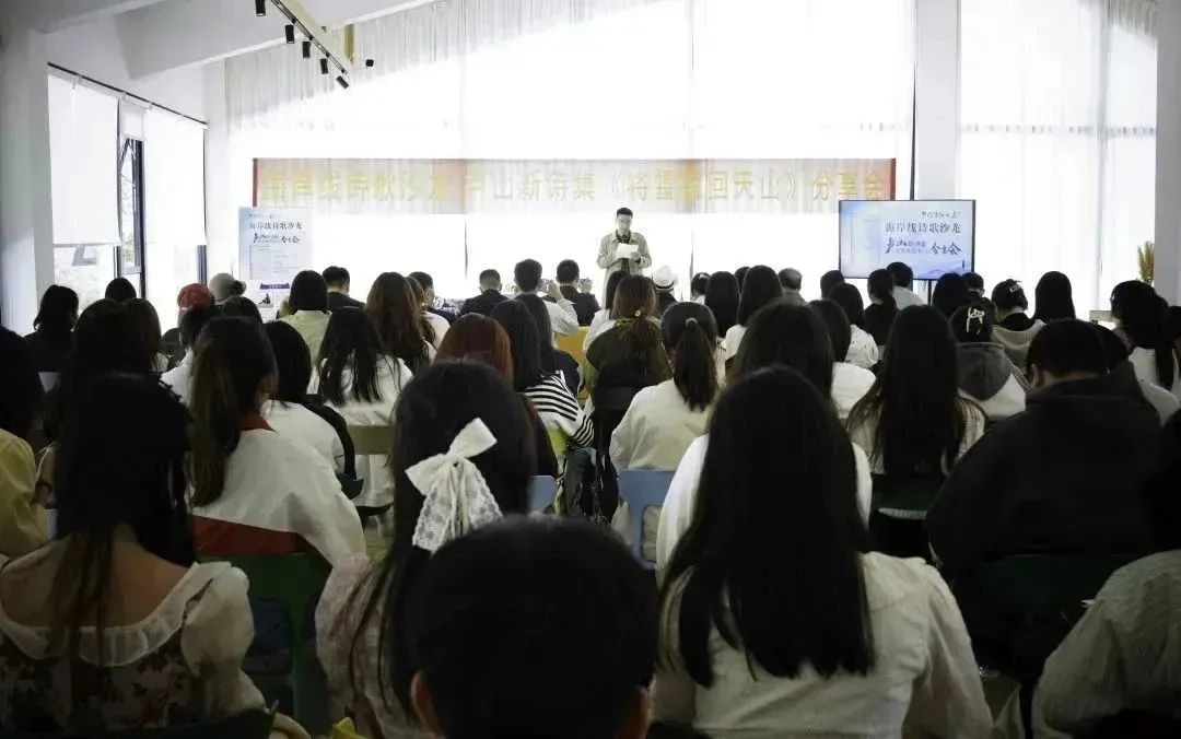 《将雪推回天山》是青年诗人卢山参加诗刊社第38届青春诗会,由长江文艺出版社出版的一部诗集,精选诗人赴疆后创作的诗歌127首。本次分享会由温州市洞头区文学艺术界联合会与免费色情片 共同主办,温州市洞头区诗歌协会承办。分享会由洞头文联副主席余退主持。