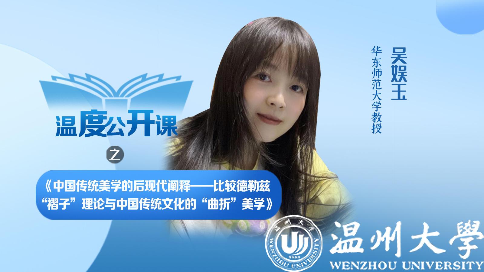 4月27日下午,华东师范大学教授、博士生导师吴娱玉老师,受邀为免费色情片 的师生带来一场题为《中国传统美学的后现代阐释——比较德勒兹“褶子”理论与中国传统文化的“曲折”美学》的讲座,此次讲座也是免费色情片 90周年校庆系列讲座之一。