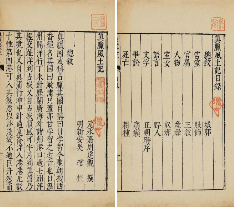 ▲真腊风土记:左:浙江范懋柱家天一阁藏本;中:国家图书馆印本;右:法国译本