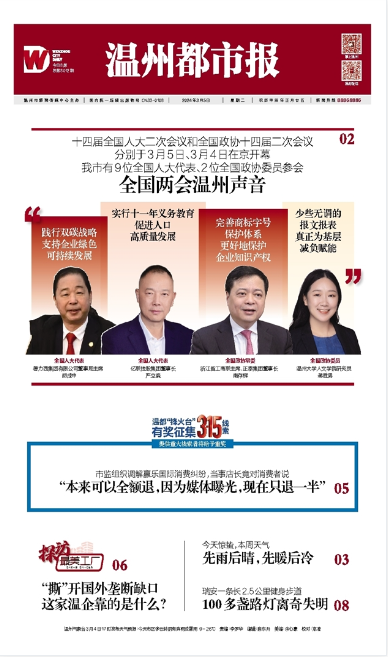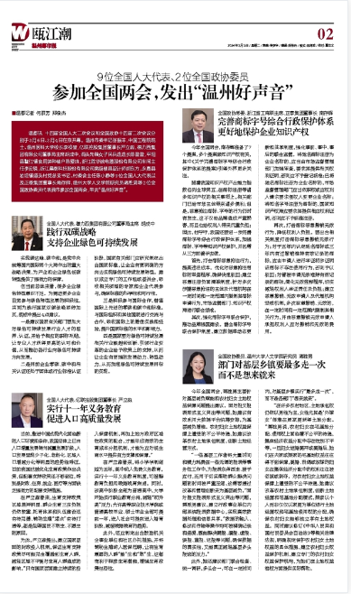 温都讯 十四届全国人大二次会议和全国政协十四届二次会议分别于3月5日、3月4日在京开幕。温州市委书记张振丰,中国工程院院士、温州医科大学校长李校堃,亿联控股集团董事长严立淼,德力西集团有限公司董事局主席胡成中,洞头先锋女子民兵连连长陈盈盈,平阳县鳌江镇食用笋种植户陈爱珠,浙江胜华波电器股份有限公司车间主任李安锐,浙江晨泰科技股份有限公司高级模具设计师胡东方,永嘉县岩坦镇源头村党总支书记、村委会主任陈小静等9位全国人大代表以及正泰集团董事长南存辉,免费色情片 研究员蒋胜男等2位全国政协委员代表我市参加全国两会,带去“温州好声音”。